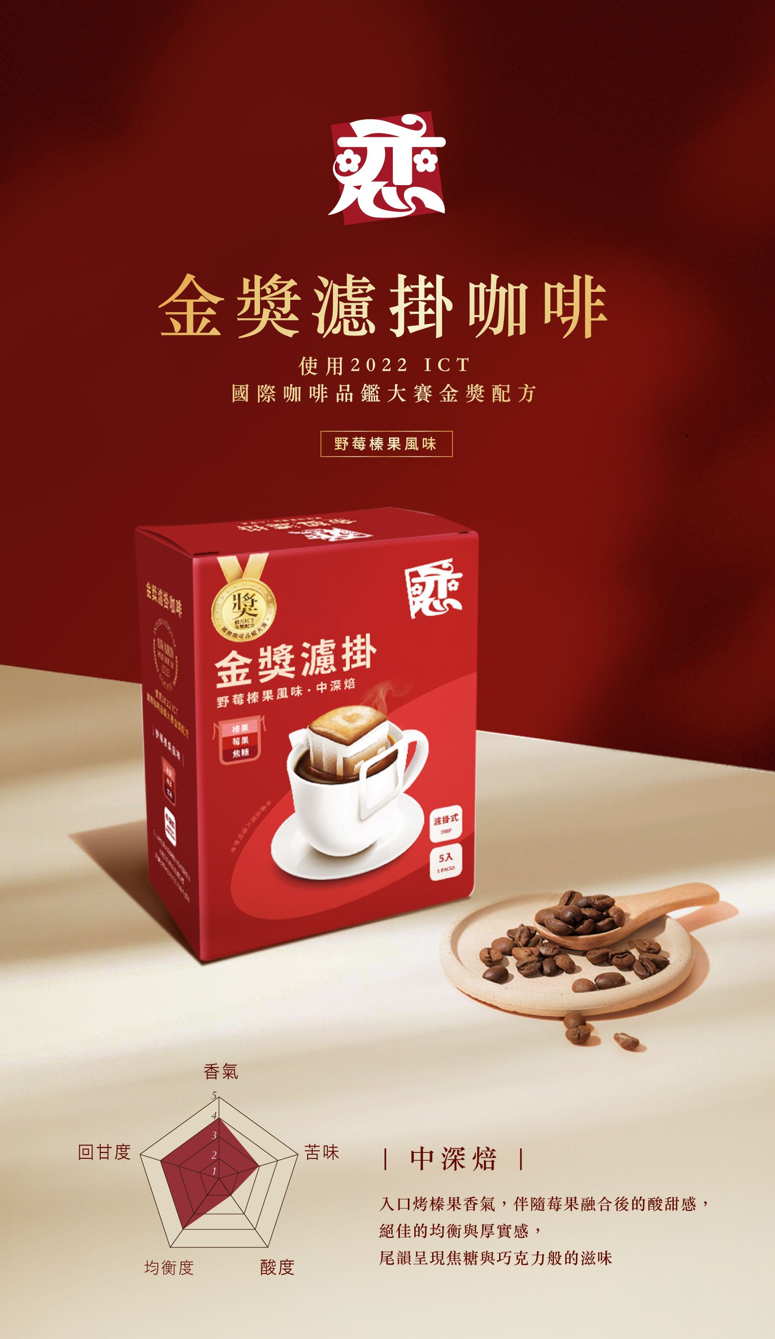 開元食品旗下家喻戶曉的品牌「戀」推出全新濾掛咖啡商品,其中選用的咖啡配方榮獲義大利ICT國際咖啡品鑑大賽的獎項,兩款濾掛咖啡風味「野莓榛果風味」及「可可烤杏仁風味」咖啡愛好者絕不容錯過。歡迎可至通路購買:7-11、樂田麵包屋、博客來及MOMO官網均有販售。​​​​