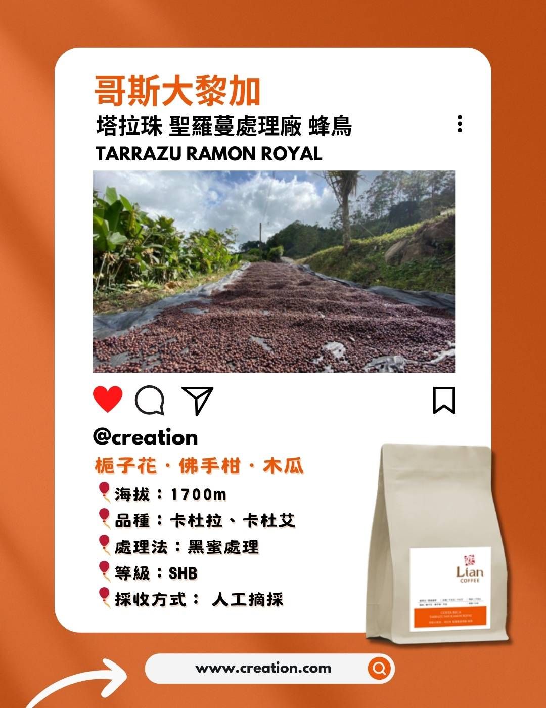 戀 ‧ 精品咖啡 哥斯大黎加 塔拉珠 聖羅蔓處理廠 蜂鳥Lian Costa Rica Tarrazu Ramon Royal